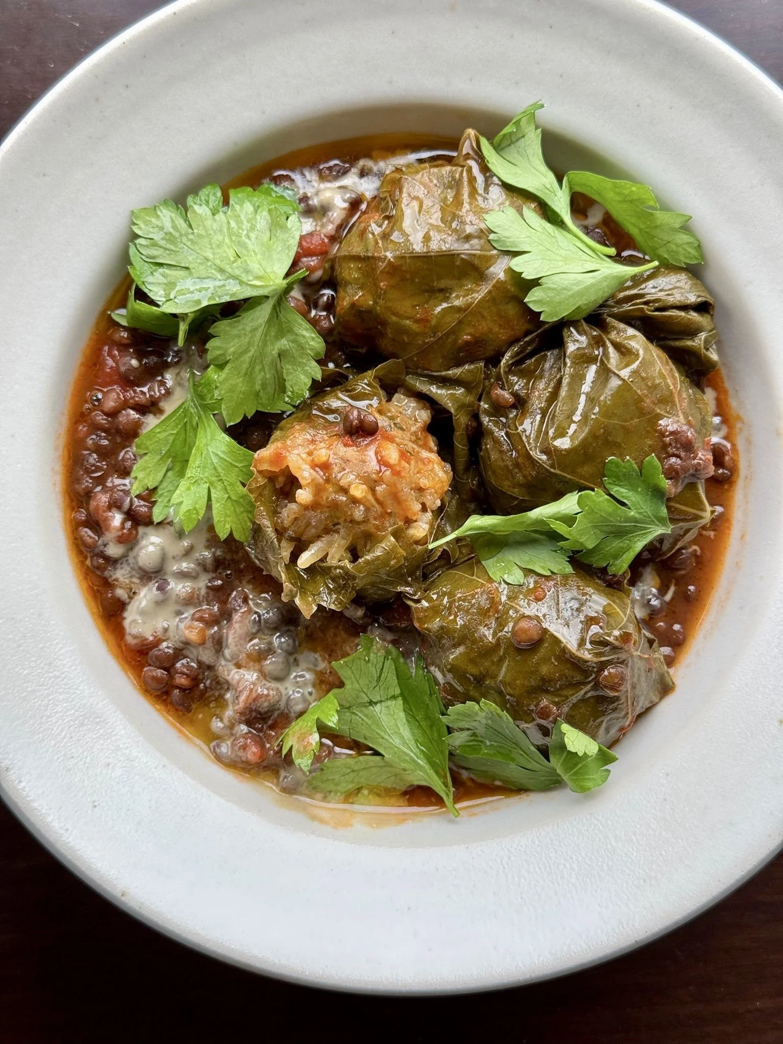 Vine Wrapped Meatballs and Lentils