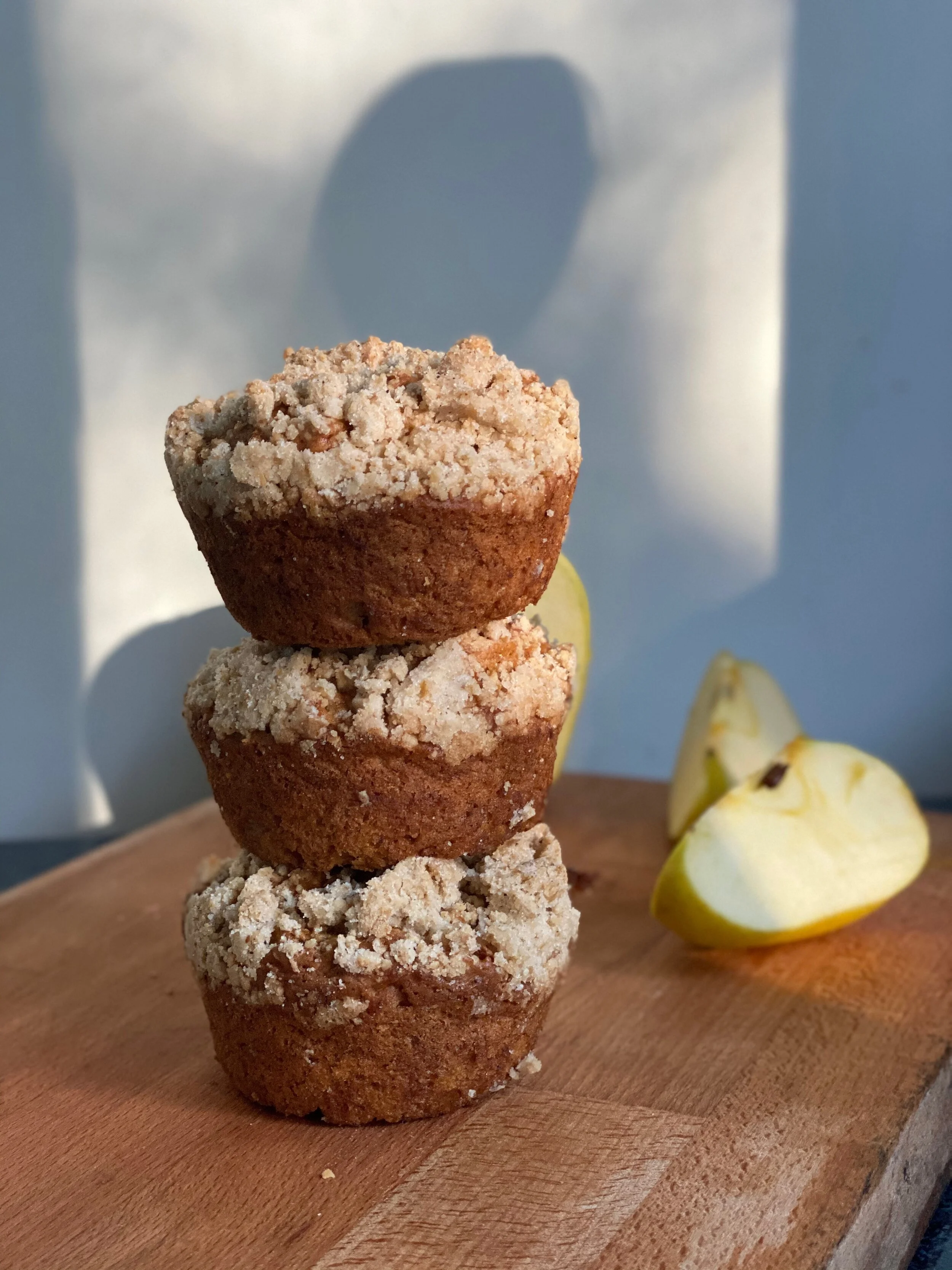 5. Add enough batter into each muffin compartment to fill it up 3/4 of the way. Top with as much crumble as you would like and bake until golden and a toothpick inserted comes out clean; this should take around 35-45 minutes. If you’re baking them in cupcake moulds, make sure to check them earlier as they will cook quicker. When they have baked, let them cook completely in the mould before removing and eating them.